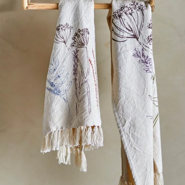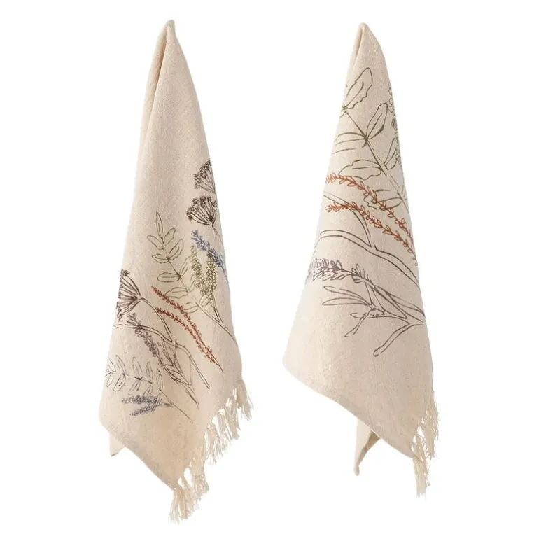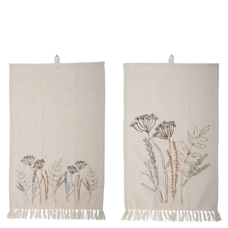 Bea kjøkkenhåndkle natur fra Bloomingville er et sett med 2 stk stilfulle håndklær, med målene 70×45 cm, laget av myk bomull. Håndklærne har en naturlig nyanse som harmonerer med ulike interiørstiler, og er dekorert med et delikat blomstermotiv som tilfører en subtil farge til kjøkkenet. Frynsene i endene gir en sjarmerende og koselig detalj. Perfekte til både praktisk bruk og som et dekorativt element på kjøkkenet.
