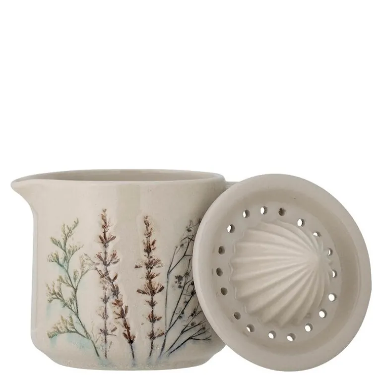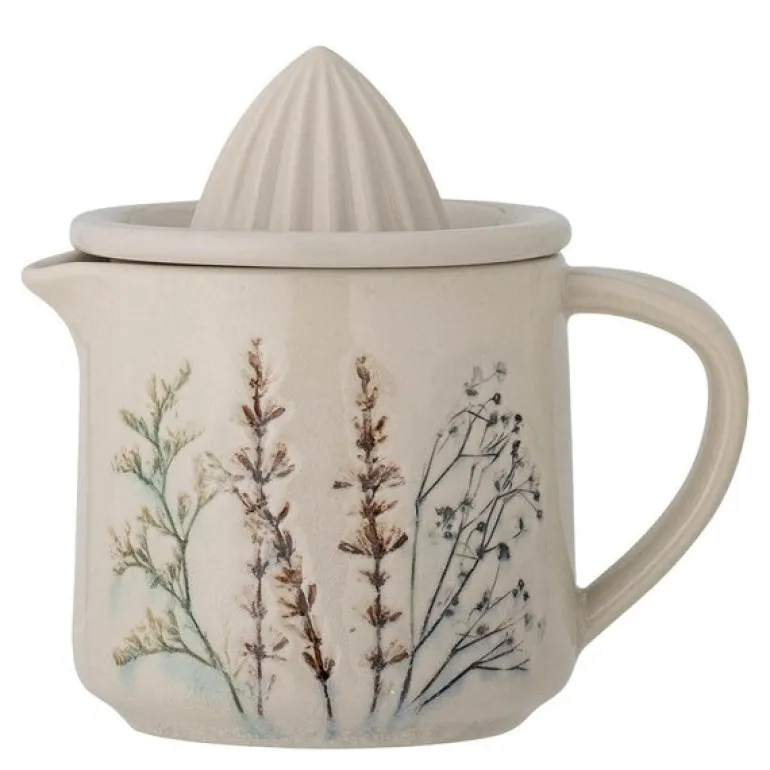Bea sitruspresser 45 cl i natur fra Bloomingville er en praktisk og dekorativ sitruspresser laget av steintøy i naturlige toner. Den delikate glasuren er dekorert med et håndmalt blomstermotiv, noe som gir hver presser et unikt preg.
