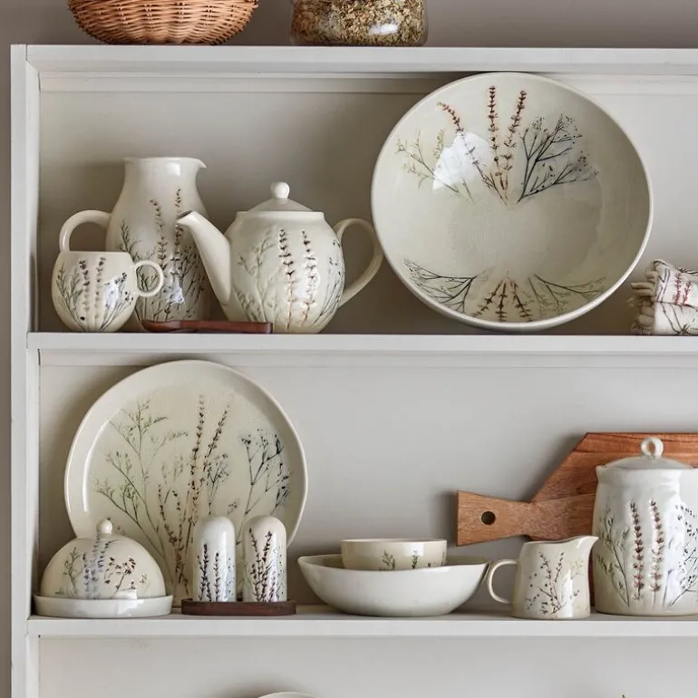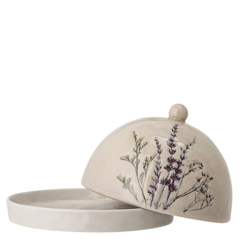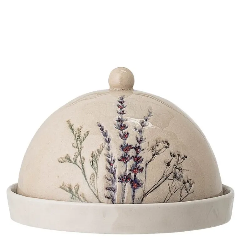 Bea smørboks 10×15 cm fra Bloomingville er en vakker oppbevaringsløsning laget av steintøy. Den er dekorert med et delikat, hånddekorert blomstermønster som harmonerer vakkert med den krakelerte glasuren. Hver smørboks er unik på grunn av glasurens og de håndmalte detaljenes naturlige variasjoner.
