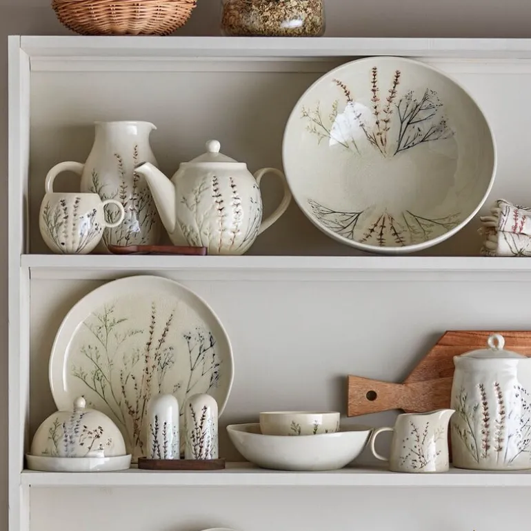 Bea tekanne på 1,2L i natur fra Bloomingville er en elegant og funksjonell tekanne laget av holdbart steintøy. Den naturlige tonen på glasuren er dekorert med delikate, håndmalte blomstermotiver som gir hver tekanne et unikt og personlig preg. Med en kapasitet på 1,2 liter er den ideell for å servere te til både hverdags og spesielle anledninger. Den krakelerte glasuren tilfører ekstra sjarm, og tekannen tåler oppvaskmaskin for enkel rengjøring.