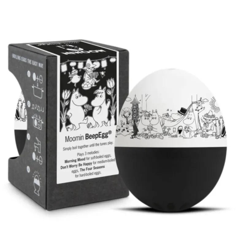 BeepEgg Moomin eggtimer i svart/hvit fra Brainstream er den perfekte løsningen for å tilberede egg akkurat slik du vil ha dem. Med et sjarmerende Mummi-motiv er den både en perfekt gave og et praktisk kjøkkenverktøy. BeepEgg fungerer uansett hvor du befinner deg, og det spiller ingen rolle om du starter med kaldt eller kokende vann. Den kan brukes til et ubegrenset antall egg samtidig.