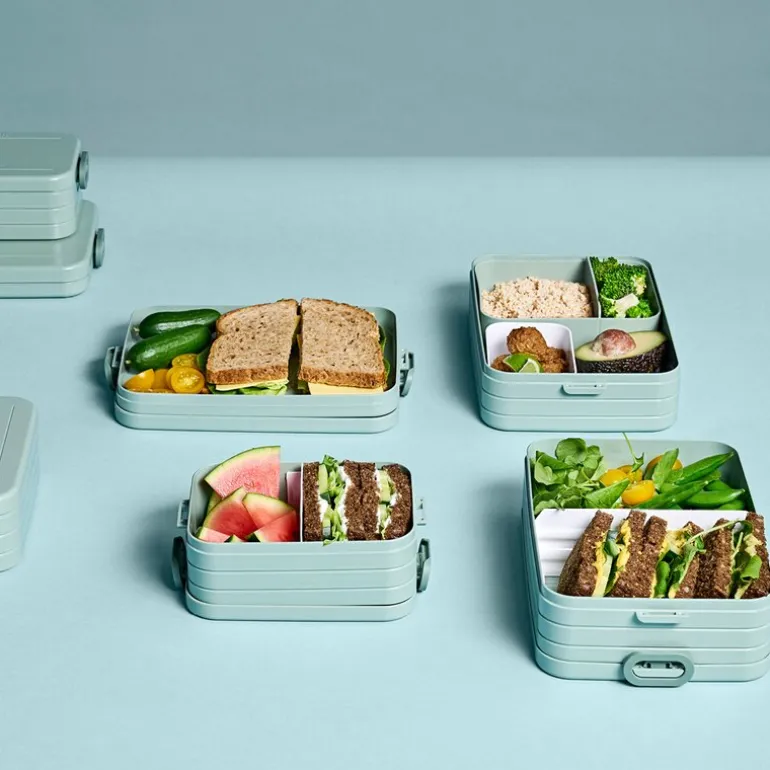 Mepal Bento matboks medium i fargen nordic sage er en praktisk og robust løsning for å holde medbragt mat fersk og organisert. Med målene 17 x 12 x 6,5 cm passer den perfekt til sandwicher, salater, frukt eller andre delikatesser.