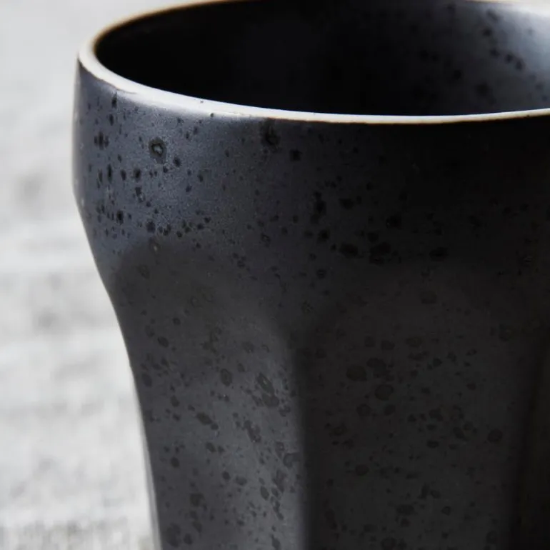 Noen ganger trenger du bare en ekstra dose koffein. Espressokopp 10 cl svart, av steintøy kalt Berica har ikke et håndtak, men hviler komfortabelt i hånden, takket være den rillede formen. House Doctor har gitt den en unik overflate som ser oksidert ut med sine uregelmessige svarte farger og små flekker. Dekk et frokostbord med tallerkener og kopper i et lignende utseende, eller bland med et utvalg av teksturer og glasurer for en personlig borddekking som vekker sansene.