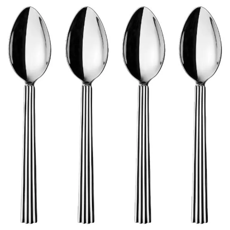 Fire store teskjeer fra Bernadotte-serien til Georg Jensen. Med sine grafiske bølgende Art Deco-former og vakre proporsjoner har Bernadotte bestikk bestått tidens prøve og blitt en ekte klassiker.