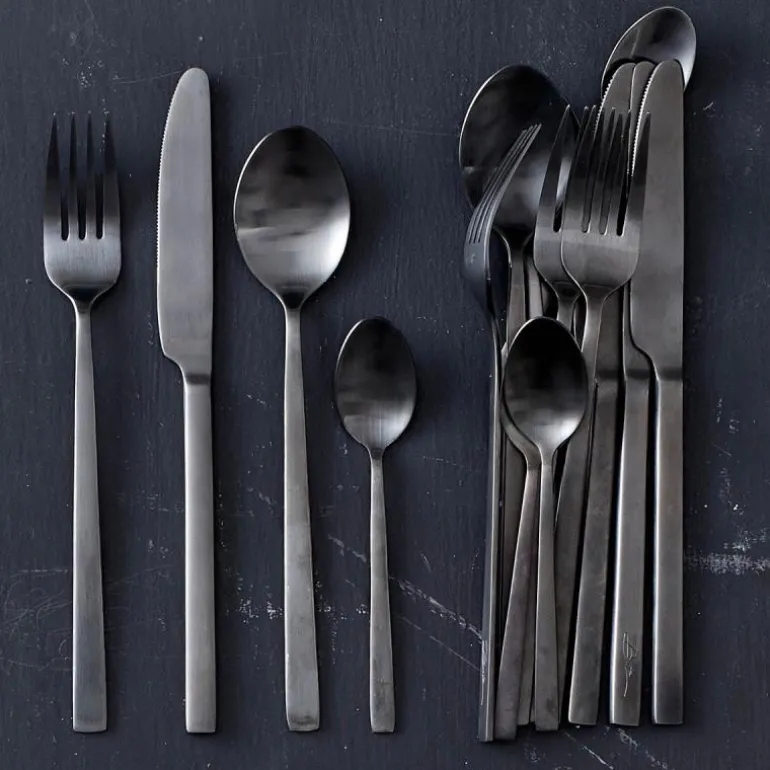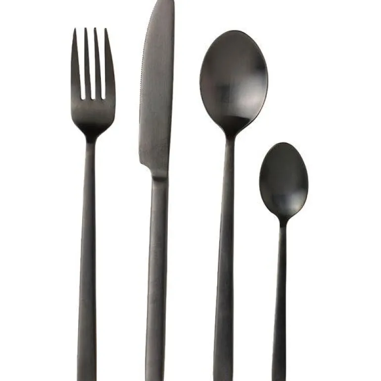 Bitz 16 deler bestikksett i svart matt finish stål. Settet inneholder: 4 x kniver 4 x gafler 4 x skeer 4 x teskjeer Tåler ikke oppvaskmaskin Med inngravert Bitz logo på baksiden. Bestikket tåler ikke oppvaskmaskin.