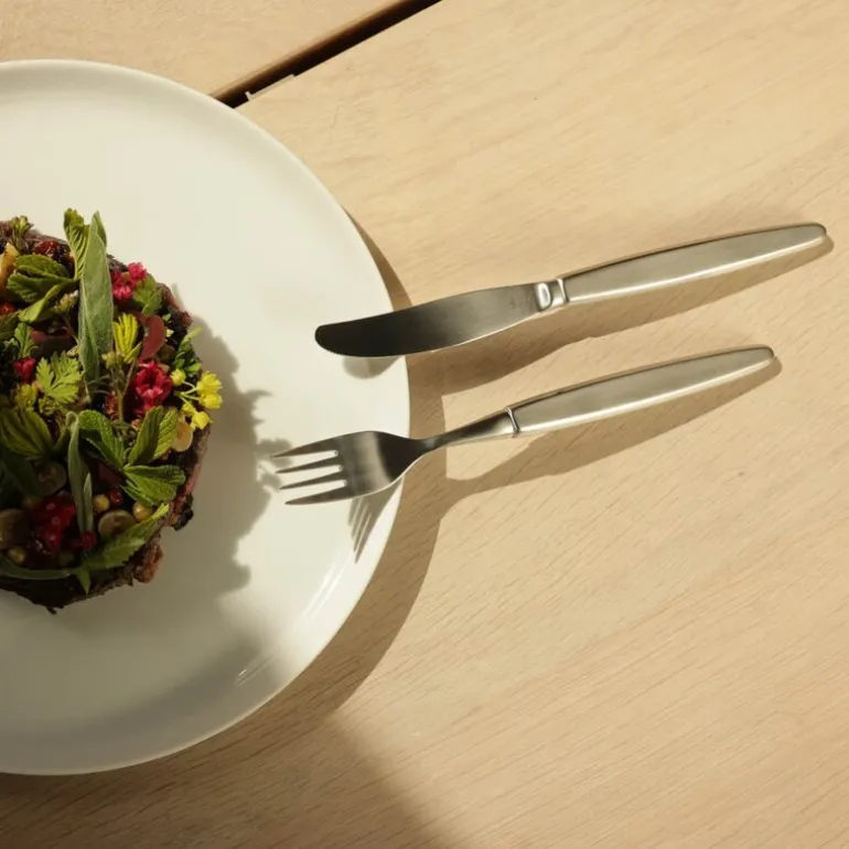 Skaugum bestikksett i børstet stål er et tidløst innslag på ethvert dekket bord. Settet består av 6 spisekniver, 6 spisegafler og 6 spiseskjeer, alle med en lengde på 21,5 cm. Det hele leveres i en stilren gaveeske – perfekt til både gave og eget bruk.