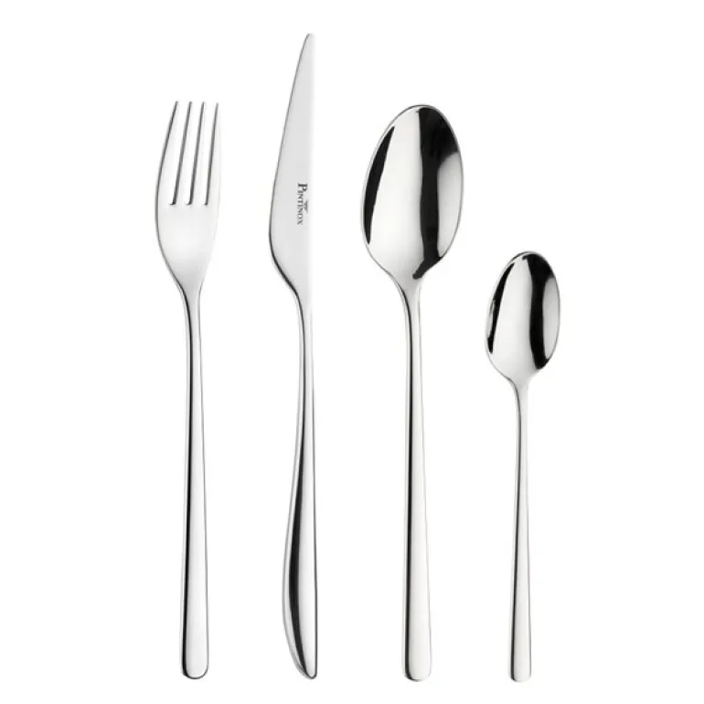 Bestikksettet Florence Inox fra Pintinox består av 24 deler og er laget i rustfritt stål med et design som kombinerer enkelhet og eleganse. Settet inneholder alt du trenger for seks personer: seks kniver, seks gafler, seks spiseskjeer og seks kaffeskjeer. Den avsmalnende formen gir bestikket et lett og moderne preg.