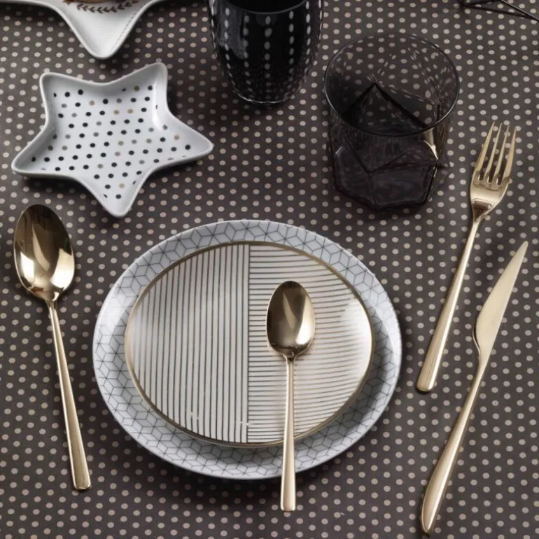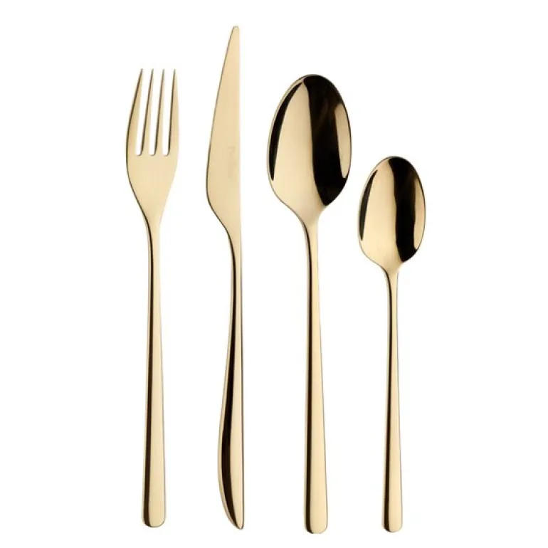 Pintinox Florence Sunshine er et 24-delt bestikksett i forgyllet rustfritt stål som gir bordet et elegant og moderne preg. Settet inneholder seks kniver, seks gafler, seks spiseskjeer og seks kaffeskjeer – alt du trenger for å dekke til seks personer.