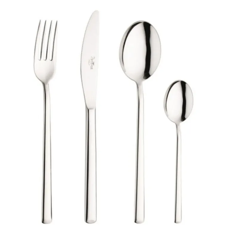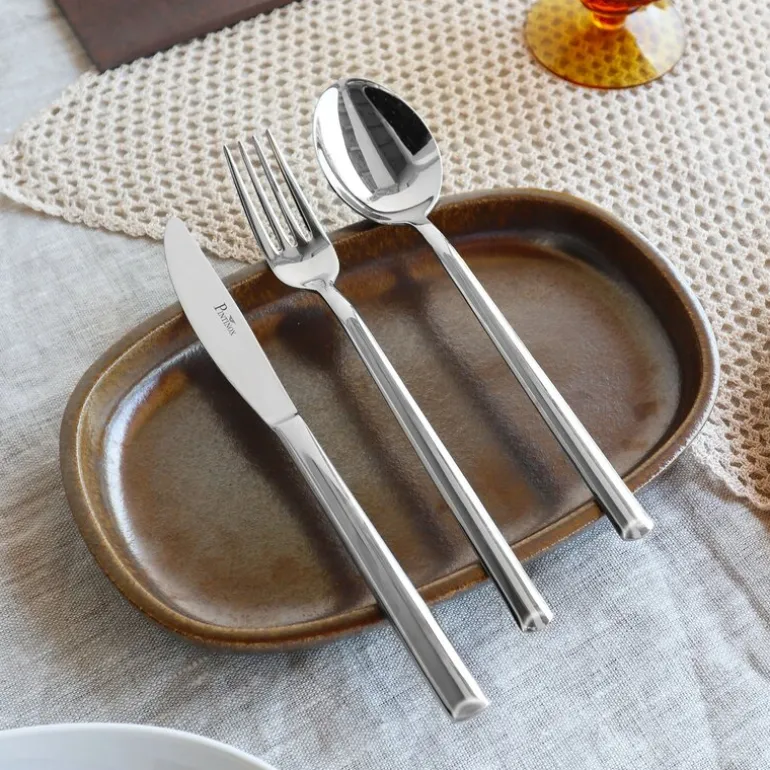 Bestikksettet Synthesis fra Pintinox består av 24 deler i rustfritt stål og dekker behovet til seks personer. Innholdet inkluderer seks kniver, seks gafler, seks spiseskjeer og seks kaffeskjeer. Designet er laget med tanke på brukervennlighet, og hver del har myke overganger som gir et godt og komfortabelt grep.