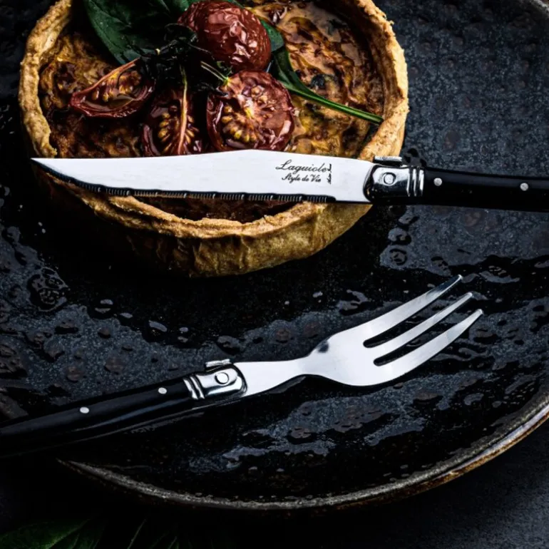 Dette mini-bestikksettet fra Laguiole Style de Vie består av 12 deler – seks kniver og seks gafler – og er laget med tanke på praktiske, små serveringer. Bestikket har en sort finish og passer perfekt til tapas, piknik, småretter og uformelle sammenkomster utendørs eller hjemme.