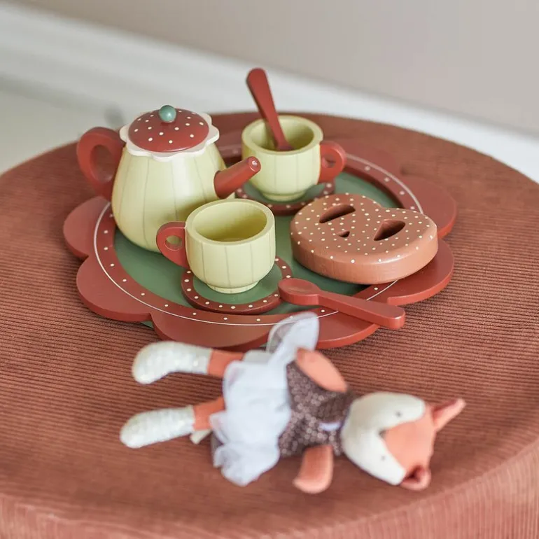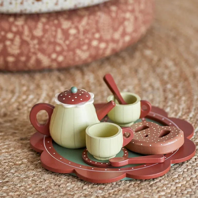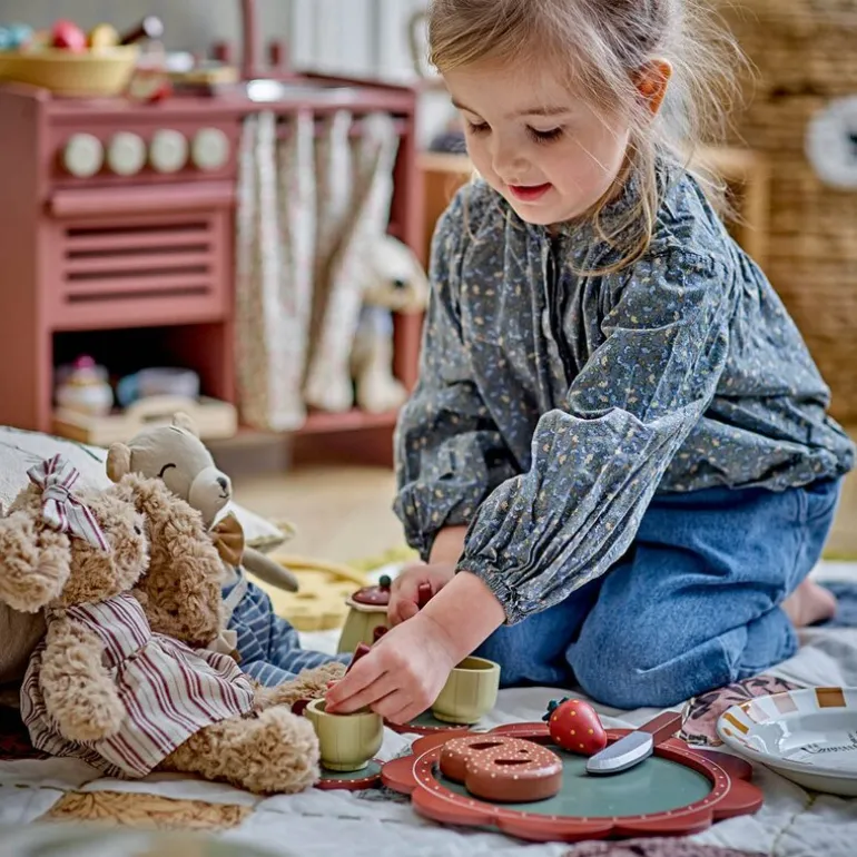 Bette kjøkkensett fra Bloomingville MINI er et sjarmerende lekesett i tre som gir barna muligheten til å arrangere sitt eget lille teselskap. Settet består av 9 deler i harmoniske farger: et brett, tekanne, kopper, fat, skjeer og en kringle. Alt er laget av FSC-sertifisert tre og er perfekt for fantasifull lek med bamser og venner.