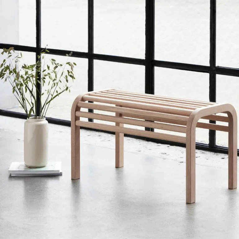 Andersen natur benk er en elegant og stilrent benk. Benken har et iøynefallende og skulpturelt design som passer inn i moderne hjem. Benken er produsert i 100% eik og kan stå fint i en gang, kjøkken eller et soverrom.
