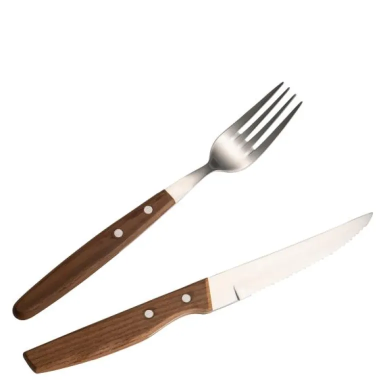Biffbestikk 8 deler natur/børstet, fra Brusletto. Nyt et godt grillmåltid med Brusletto biffbestikk. Settet har et tidløst design med trehåndtak i varmebehandlet ask som passer både klassisk og trendy borddekking. Kniven har et ergonomisk håndtak og skarpt tagget blad, perfekt for biff og nygrillede delikatesser. Produsert i 18/8 (kniv 13/0) stålkvalitet.