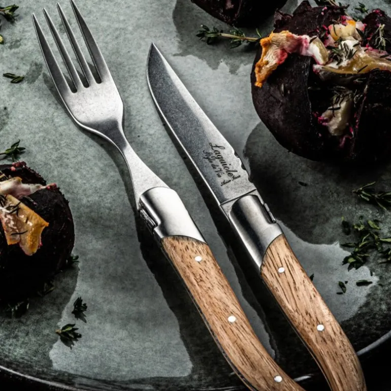 Laguiole biffkniver Oak Stonewash kommer i et sett med seks kniver og er designet for å komplettere både moderne og klassiske borddekkinger. Knivene har glatt blad med 2,5 mm tykkelse, som gir presise kutt og en behagelig skjæreopplevelse ved kjøttservering.