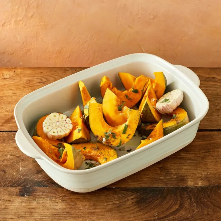 Big Love ildfast form fra Jamie Oliver, 39×25 cm i klassisk hvit, er et essensielt redskap for kjøkkenet ditt. Laget av robust steingods, er denne formen designet for å tåle både intens bruk og høy varme, opptil 250 °C. Den store størrelsen gjør den perfekt for alt fra boblende grønnsaks-lasagne til fyldige gryteretter, og dens elegante design gjør det enkelt å servere rett fra ovn til bord.
