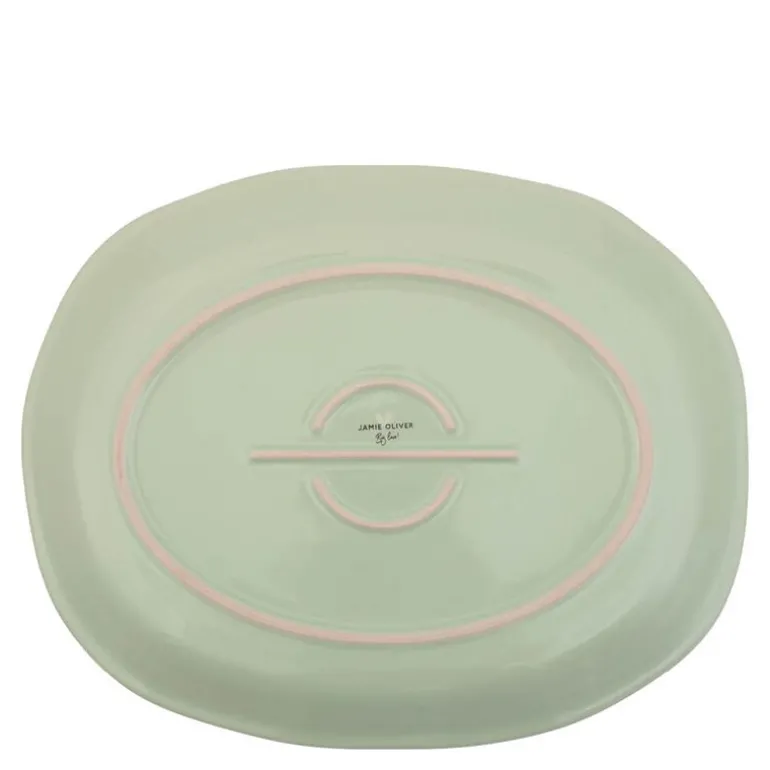 Jamie Oliver Big Love serveringsfat i grønn, med målene 40×32 cm, er designet for å være en elegant og praktisk del av ditt kjøkken. Fatet er laget av solid steintøy, som ikke bare tåler hyppig bruk, men også gir en stilfull presentasjon til både hverdags- og festmåltider. Enten det fylles med varme middagsretter eller dekorative fruktfat, vil dette fatet bli et naturlig midtpunkt på bordet.