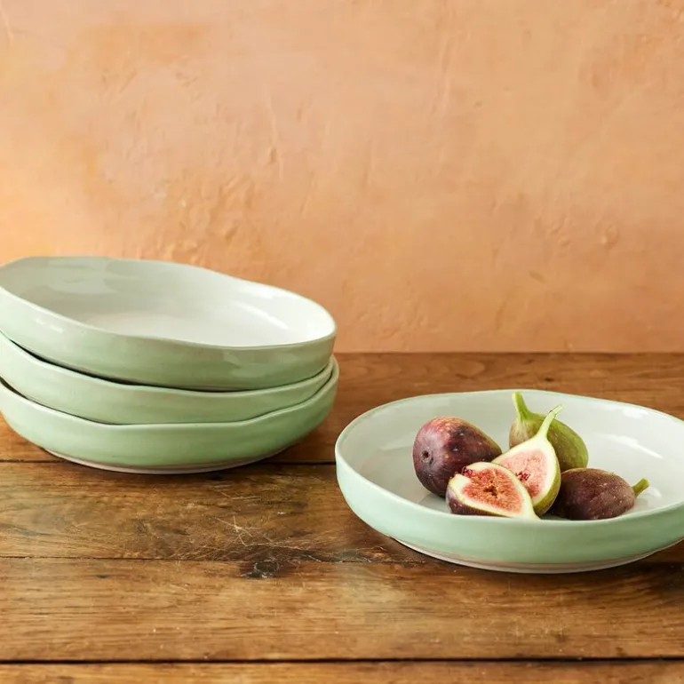 Big Love skålsett fra Jamie Oliver, med fire skåler på 22 cm i en elegant grønn og hvit fargetone, er designet for å kombinere stil og funksjonalitet i hverdagen. Laget av solid steintøy, tåler disse skålene oppvaskmaskin, mikrobølgeovn og ovn opptil 250 °C, noe som gjør dem både allsidige og robuste.