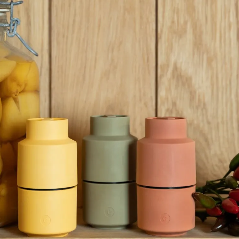 Billund-serien er preget av sitt rolige og fargerike design, med en nøye utvalgt krydderinspirert fargepalett, utviklet i samarbeid med det danske designselskapet STILLEBEN. Kvernen er laget av et biokomposittmateriale basert på trebaserte cellulosefibre fra sertifiserte, bærekraftig forvaltede skoger. Dette gir kvernen en varm og naturlig følelse, samtidig som det bidrar til å redusere produktets miljøpåvirkning med et lavt CO2-avtrykk. I motsetning til avlingsbaserte biomaterialer påvirker ikke dette materialet matproduksjonskjeden, noe som gjør det til et bærekraftig valg. Med sin elegante design og miljøvennlige profil er Billund krydderkvern både et praktisk og estetisk tilskudd til ethvert kjøkken.