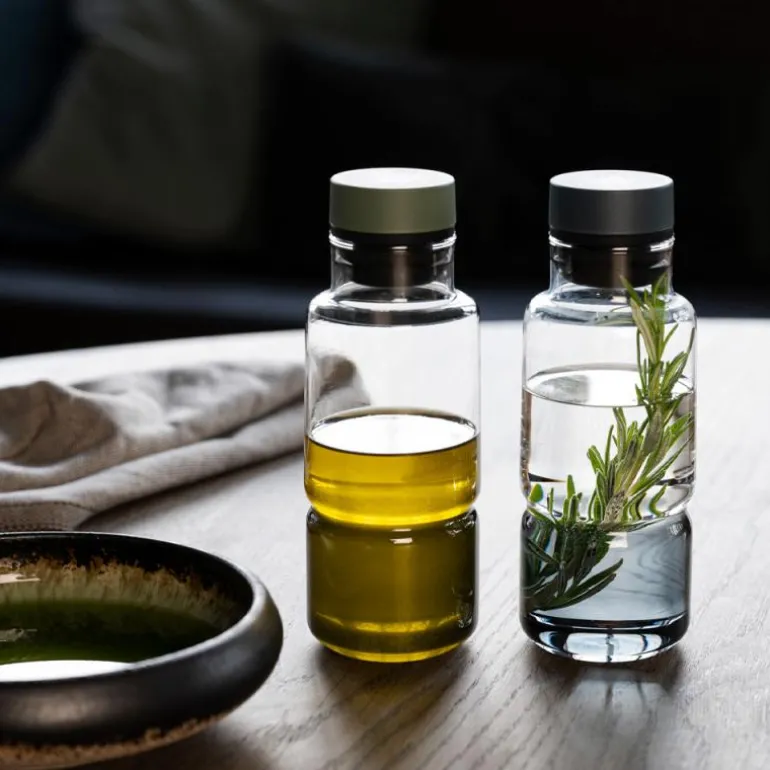- Oljeflaske og dressingshaker