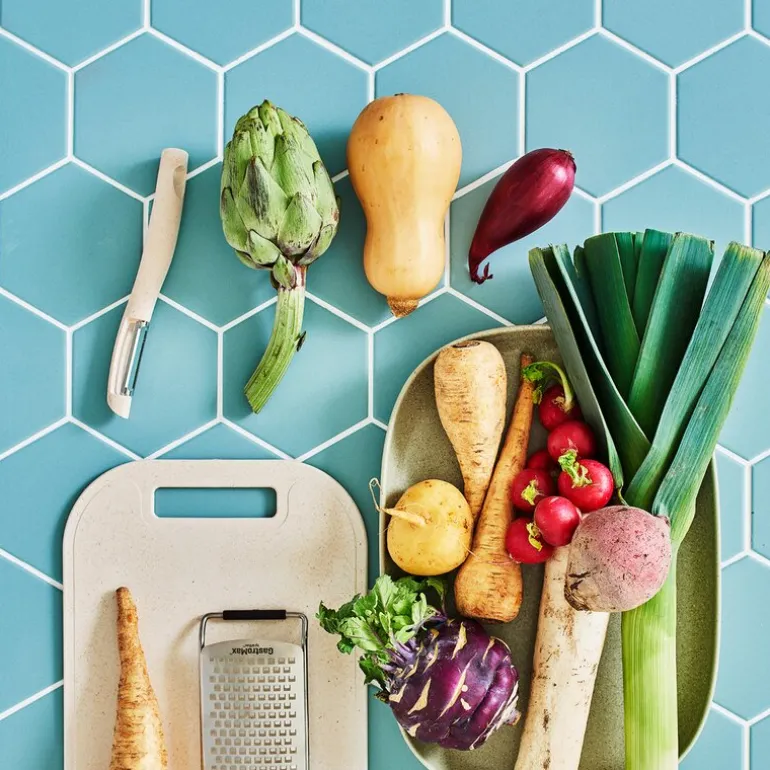 Materialet i håndtaket er en biobasert plastblanding som kombinerer sukkerrør og trefiber fra nordisk gran. Resultatet er et grep som både er solid og gir opptil 60 % lavere karbonutslipp enn tradisjonell plast.