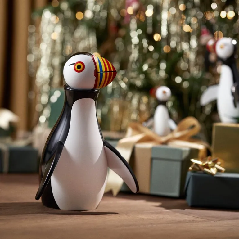 Birds lundefugl 30 cm, fra Kay Bojesen. Smil om nebbet i 70 år! Lundefuglen har vært en kjær skapning siden Kay Bojesen først lot seg inspirere av den sjarmerende fuglen fra det kalde nord og skapte sin elskede Lundefugl i 1954. Nå, i anledning av 70-årsjubileet, feires denne ikoniske figuren med to spesielle utgaver: en stor jubileumsutgave og en ny, sjarmerende ministørrelse.