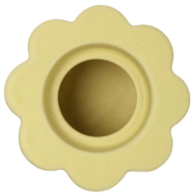 Birgit vase 5 cm pale yellow fra PotteryJo Birgits organiske former fremkaller barndomsminner fra tidligere somre da Johanna Hampf, (grunnlegger av PotteryJo), plukket ville blomster i de vakre engene i Övermorjärv, Norrland sammen med sin elskede tante Birgit.