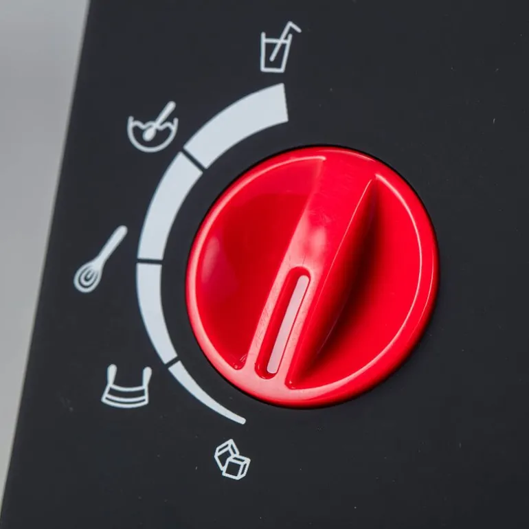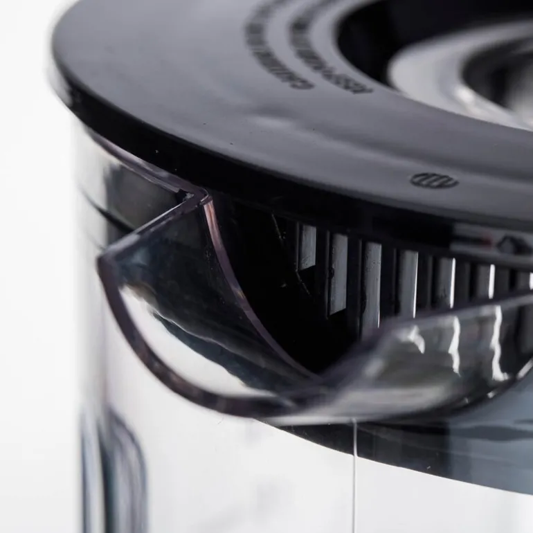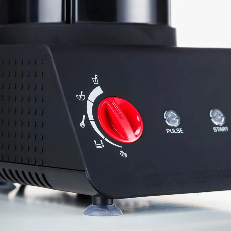 Den trinnløse hastighetskontrollen gir deg full kontroll over prosessen, og pulseringsfunksjonen gjør det lett å bearbeide harde ingredienser. Beholderen er knusesikker, lett i vekt og utstyrt med komfortabelt gummihåndtak, flat bunn og to praktiske helletuter – én med sil, én uten.