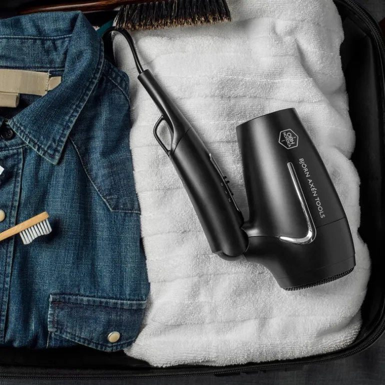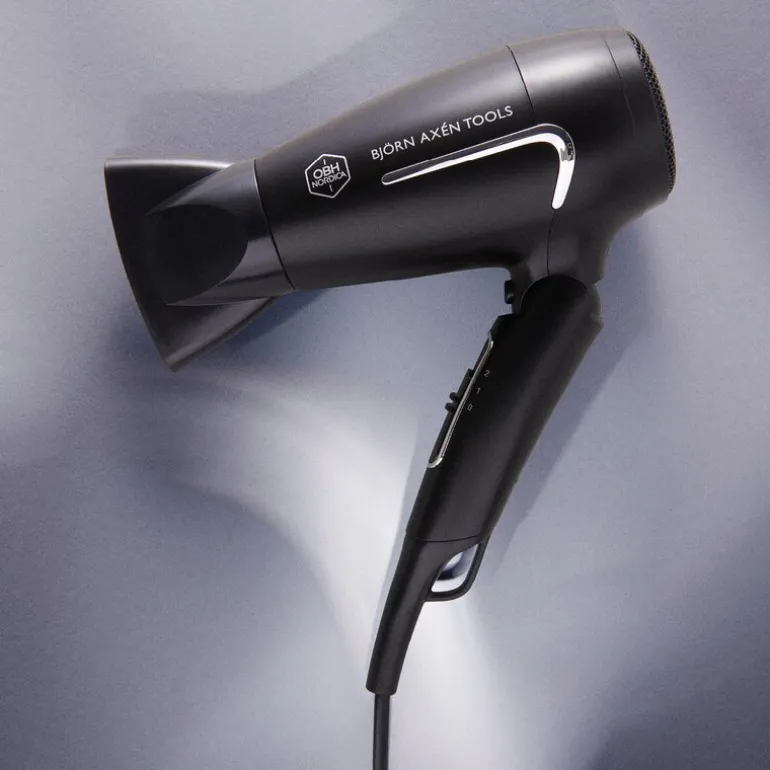 OBH Nordica Björn Axén Flow 5188 – Sammenleggbar hårføner for reise og fleksibel styling. Hold frisyren perfekt – uansett hvor du er – med Björn Axén Flow reisehårføner fra OBH Nordica. Med sitt kompakte, sammenleggbare design passer den perfekt i kofferten, treningsbagen eller vesken. Til tross for størrelsen, leverer den pålitelig ytelse som gir deg rask tørking og enkel styling på farten.