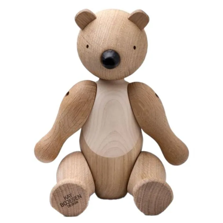 En bjørnfigur i tre, designet av den berømte Kay Bojesen. Bjørnen har rørlige armer og ben og kan brukes som leketøy for barn så vel som en fantastisk dekorativdetalj. I utgangspunktet var Kay Bojesens trefigurer tenkt å brukes som leketøy men med tiden har flere og flere begynt å bruke dem som interiørsdetaljer. Den første trebjørnen fra Kay Bojesen ble produsert allerede 1952. Bjørnen er laget i eike- og lønnetre og er 15,5 cm høy.