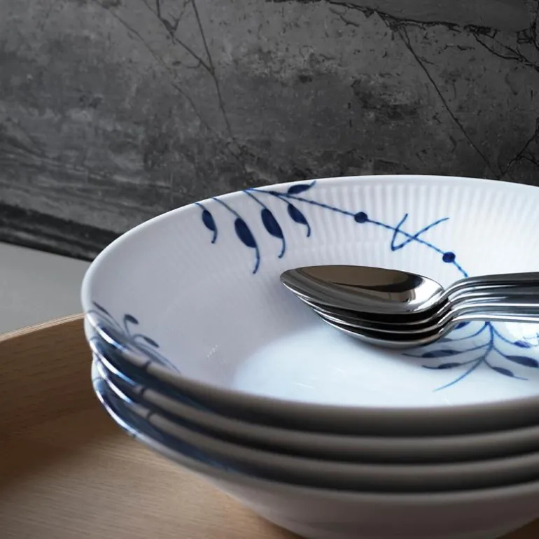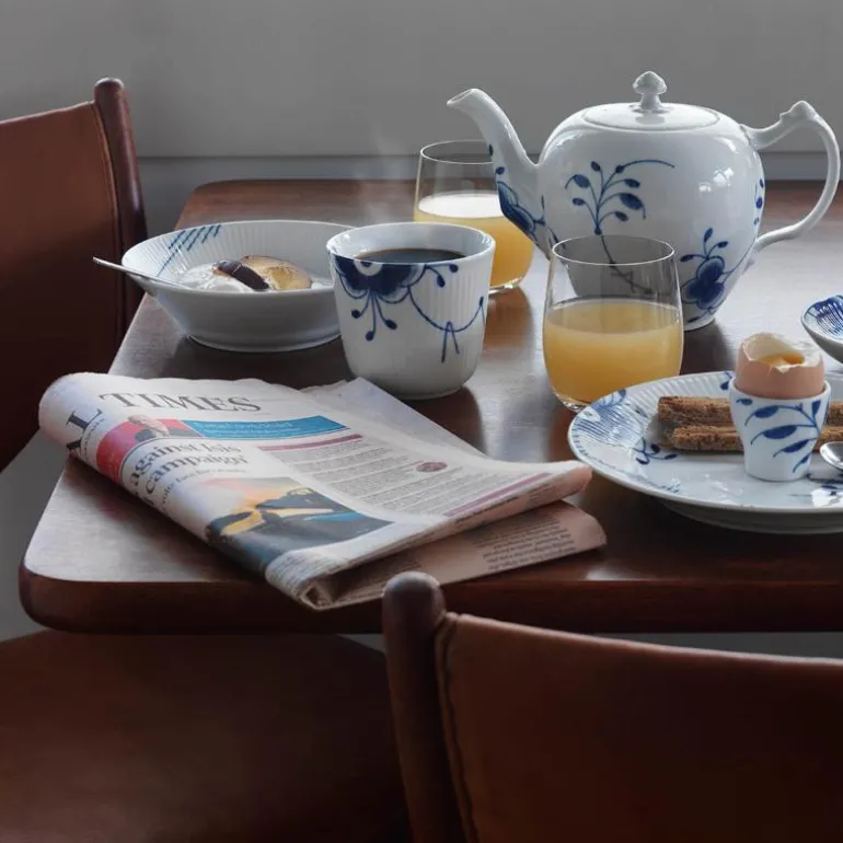 Blå Mega Riflet er både gjenkjennelig og overraskende forfriskende. I denne uvanlige nytolkningen av det klassiske mønsteret Musselmalt Riflet, har utvalgte detaljer blitt forstørret, men er fortsatt malt for hånd, slik at den originale og levende blå effekten er bevart. Mønsteret Blå Mega Riflet ble skapt av den unge designstudenten Karen Kjældgård-Larsen i 2000, og dette signaliserte starten på et nytt eventyr. Det berømte håndmalte mønsteret har blitt et kjent navn igjen som uttrykker både sin historiske autentisitet og kreative, innovative tenkning. Blå Mega Riflet ble opprinnelig designet med 8 forskjellige mønstre. På baksiden av Mega-produktet vil du finne et nummer. Dette refererer til mønsteret på dette bestemte produktet. Porselen.