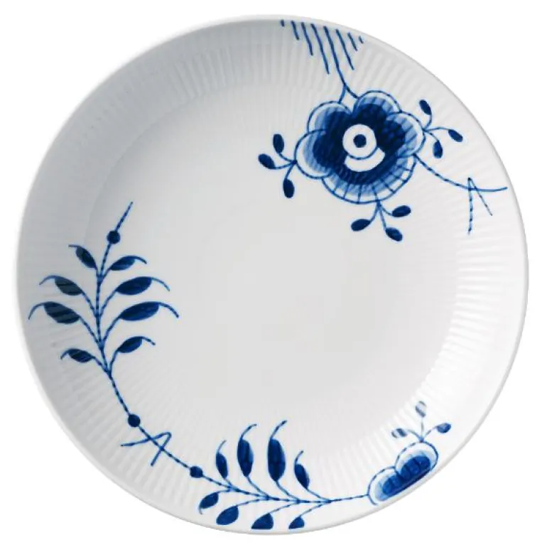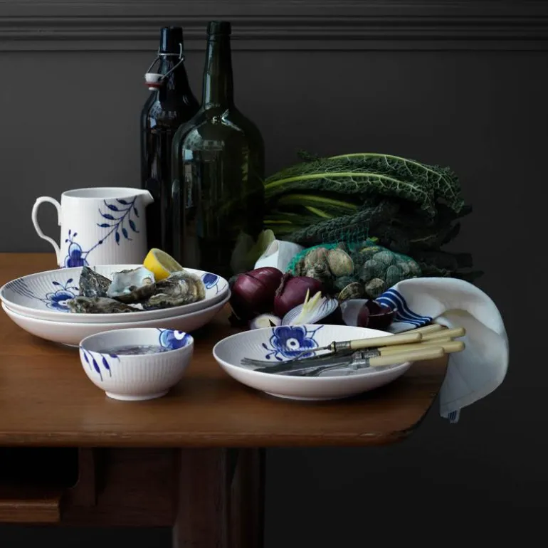 Blå Mega Riflet er både gjenkjennelig og overraskende forfriskende. I denne uvanlige nytolkningen av det klassiske mønsteret Musselmalt Riflet, har utvalgte detaljer blitt forstørret, men er fortsatt malt for hånd, slik at den originale og levende blå effekten er bevart. Mønsteret Blå Mega Riflet ble skapt av den unge designstudenten Karen Kjældgård-Larsen i 2000, og dette signaliserte starten på et nytt eventyr. Det berømte håndmalte mønsteret har blitt et kjent navn igjen som uttrykker både sin historiske autentisitet og kreative, innovative tenkning. Blå Mega Riflet ble opprinnelig designet med 8 forskjellige mønstre. På baksiden av Mega-produktet vil du finne et nummer. Dette refererer til mønsteret på dette bestemte produktet. Porselen.