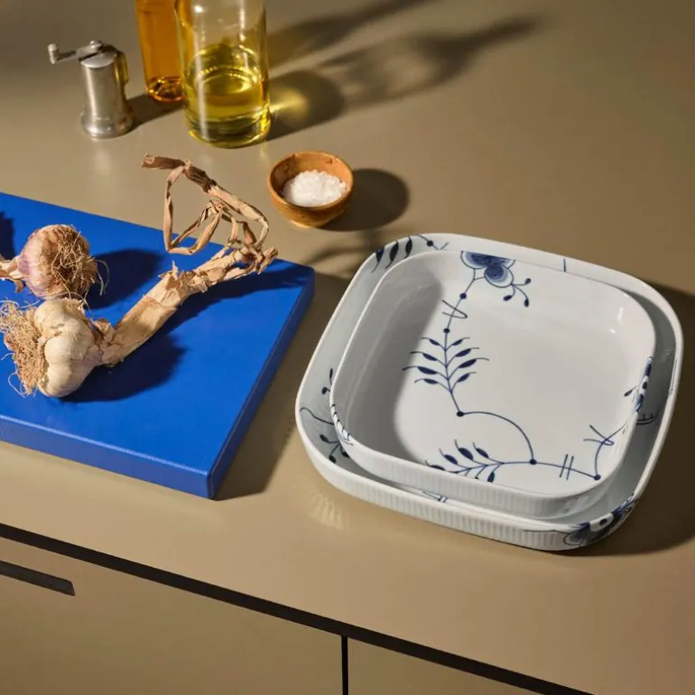 Blå Mega Riflet firkantet ovnsform kommer i to størrelser, som kan stables for enkelt oppbevaring. Denne ovnsformen er 30×30 cm og er enkel å rengjøre for hånd, men tåler oppvaskmaskin. Perfekt til servering av varme retter rett fra ovnen uten å gå på kompromiss med designet.