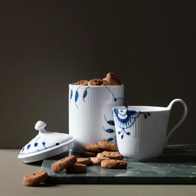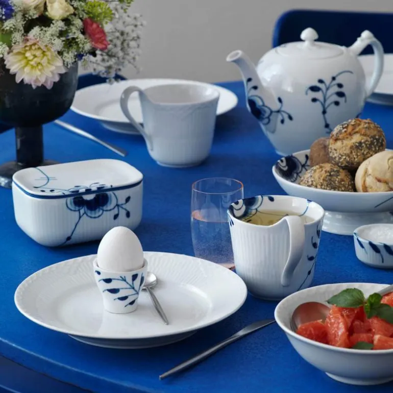 Blå Mega Riflet er både gjenkjennelig og overraskende forfriskende. I denne uvanlige nytolkningen av det klassiske mønsteret Musselmalt Riflet, har utvalgte detaljer blitt forstørret, men er fortsatt malt for hånd, slik at den originale og levende blå effekten er bevart. Mønsteret Blå Mega Riflet ble skapt av den unge designstudenten Karen Kjældgård-Larsen i 2000, og dette signaliserte starten på et nytt eventyr. Det berømte håndmalte mønsteret har blitt et kjent navn igjen som uttrykker både sin historiske autentisitet og kreative, innovative tenkning. Blå Mega Riflet ble opprinnelig designet med 8 forskjellige mønstre. På baksiden av Mega-produktet vil du finne et nummer. Dette refererer til mønsteret på dette bestemte produktet. Porselen.