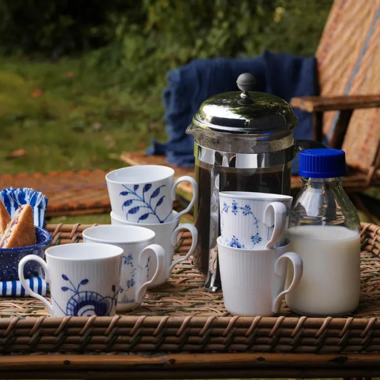 Blå Mega Riflet er både gjenkjennelig og overraskende forfriskende. I denne uvanlige nytolkningen av det klassiske mønsteret Musselmalt Riflet, har utvalgte detaljer blitt forstørret, men er fortsatt malt for hånd, slik at den originale og levende blå effekten er bevart. Mønsteret Blå Mega Riflet ble skapt av den unge designstudenten Karen Kjældgård-Larsen i 2000, og dette signaliserte starten på et nytt eventyr. Det berømte håndmalte mønsteret har blitt et kjent navn igjen som uttrykker både sin historiske autentisitet og kreative, innovative tenkning. Blå Mega Riflet ble opprinnelig designet med 8 forskjellige mønstre. På baksiden av Mega-produktet vil du finne et nummer. Dette refererer til mønsteret på dette bestemte produktet. Porselen.