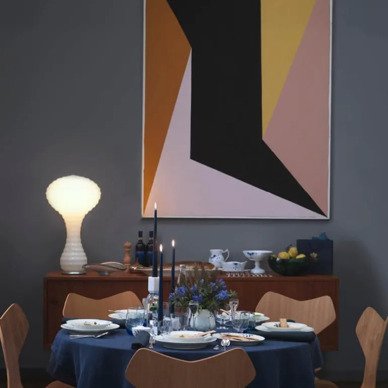 Blå Mega Riflet er både gjenkjennelig og overraskende forfriskende. I denne uvanlige nytolkningen av det klassiske mønsteret Musselmalt Riflet, har utvalgte detaljer blitt forstørret, men er fortsatt malt for hånd, slik at den originale og levende blå effekten er bevart. Mønsteret Blå Mega Riflet ble skapt av den unge designstudenten Karen Kjældgård-Larsen i 2000, og dette signaliserte starten på et nytt eventyr. Det berømte håndmalte mønsteret har blitt et kjent navn igjen som uttrykker både sin historiske autentisitet og kreative, innovative tenkning. Blå Mega Riflet ble opprinnelig designet med 8 forskjellige mønstre. På baksiden av Mega-produktet vil du finne et nummer. Dette refererer til mønsteret på dette bestemte produktet. Porselen.