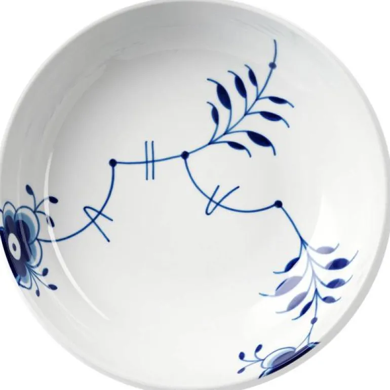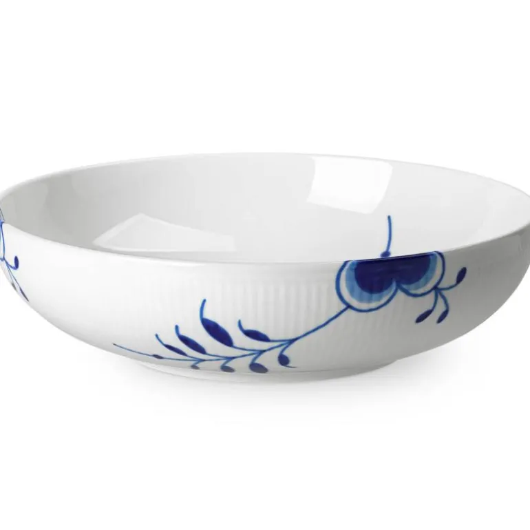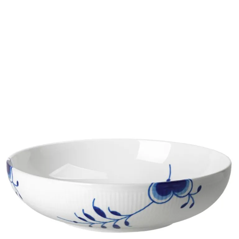 Skålen er designet av Karen Kjældgård-Larsen og er en del av Blue Fluted Mega-kolleksjonen, inspirert av det ikoniske Blue Fluted mønsteret i en større versjon.