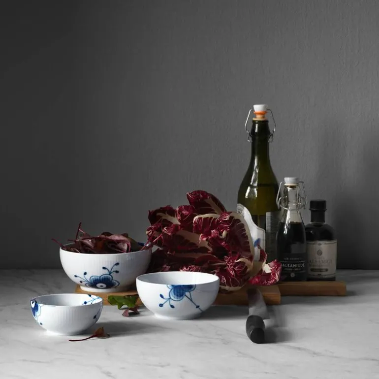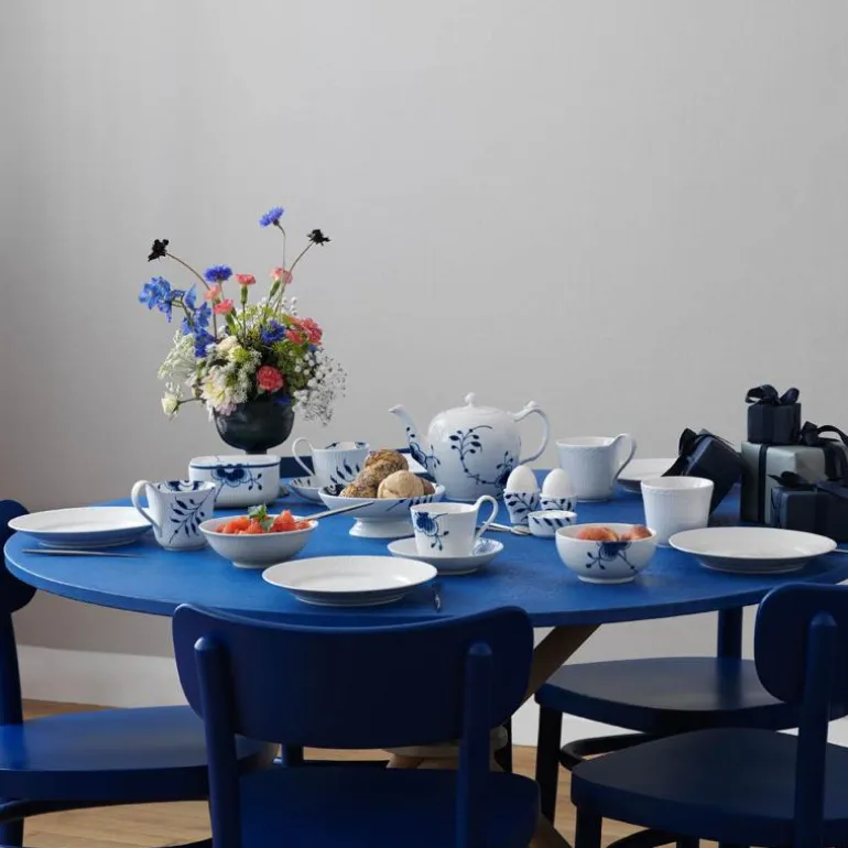 Blå Mega Riflet er både gjenkjennelig og overraskende forfriskende. I denne uvanlige nytolkningen av det klassiske mønsteret Musselmalt Riflet, har utvalgte detaljer blitt forstørret, men er fortsatt malt for hånd, slik at den originale og levende blå effekten er bevart. Mønsteret Blå Mega Riflet ble skapt av den unge designstudenten Karen Kjældgård-Larsen i 2000, og dette signaliserte starten på et nytt eventyr. Det berømte håndmalte mønsteret har blitt et kjent navn igjen som uttrykker både sin historiske autentisitet og kreative, innovative tenkning. Blå Mega Riflet ble opprinnelig designet med 8 forskjellige mønstre. På baksiden av Mega-produktet vil du finne et nummer. Dette refererer til mønsteret på dette bestemte produktet. Porselen.