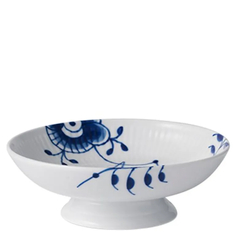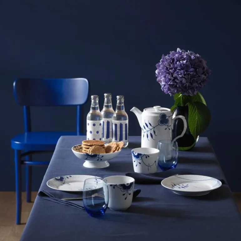 Blå Mega Riflet er både gjenkjennelig og overraskende forfriskende. I denne uvanlige nytolkningen av det klassiske mønsteret Musselmalt Riflet, har utvalgte detaljer blitt forstørret, men er fortsatt malt for hånd, slik at den originale og levende blå effekten er bevart. Mønsteret Blå Mega Riflet ble skapt av den unge designstudenten Karen Kjældgård-Larsen i 2000, og dette signaliserte starten på et nytt eventyr. Det berømte håndmalte mønsteret har blitt et kjent navn igjen som uttrykker både sin historiske autentisitet og kreative, innovative tenkning. Blå Mega Riflet ble opprinnelig designet med 8 forskjellige mønstre. På baksiden av Mega-produktet vil du finne et nummer. Dette refererer til mønsteret på dette bestemte produktet. Porselen.