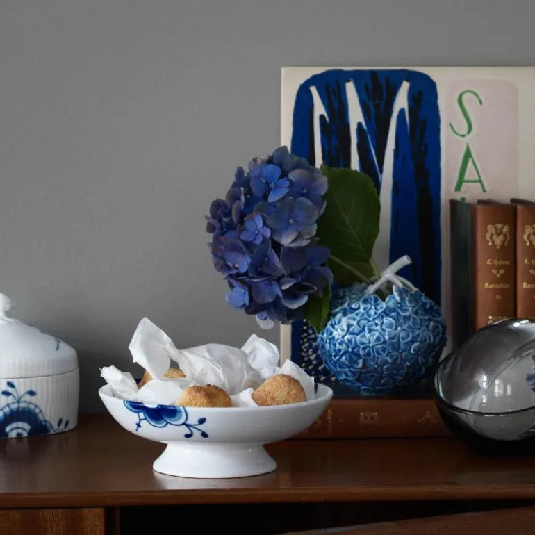 Royal Copenhagen Blå Mega har 2 års bruddgaranti og tåler oppvaskmaskin og mikrobølgeovn.