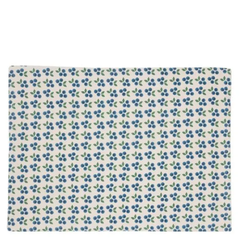 Dekorative spisebrikker i 100% organisk bomull med blåbærmotiv. Sett med fire stykker.