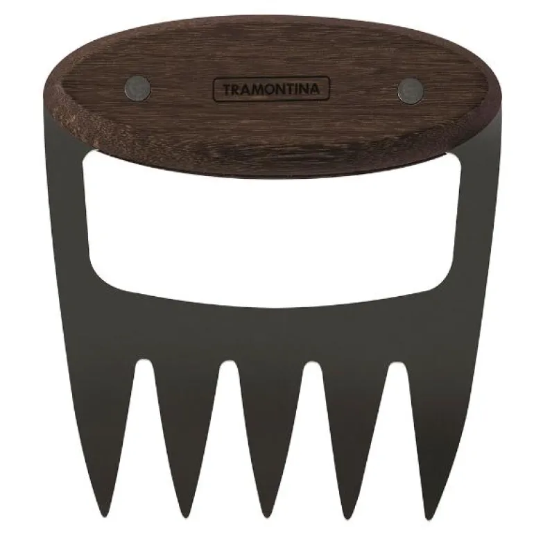 Tramontina Black Collection kjøttklo 22 cm er et kraftig og presist redskap for deg som vil ha full kontroll når du makulerer, kutter eller løfter kjøtt. Bladet i svertet rustfritt stål gir god motstand og lang holdbarhet, mens det ergonomiske trehåndtaket sikrer et komfortabelt og sikkert grep.