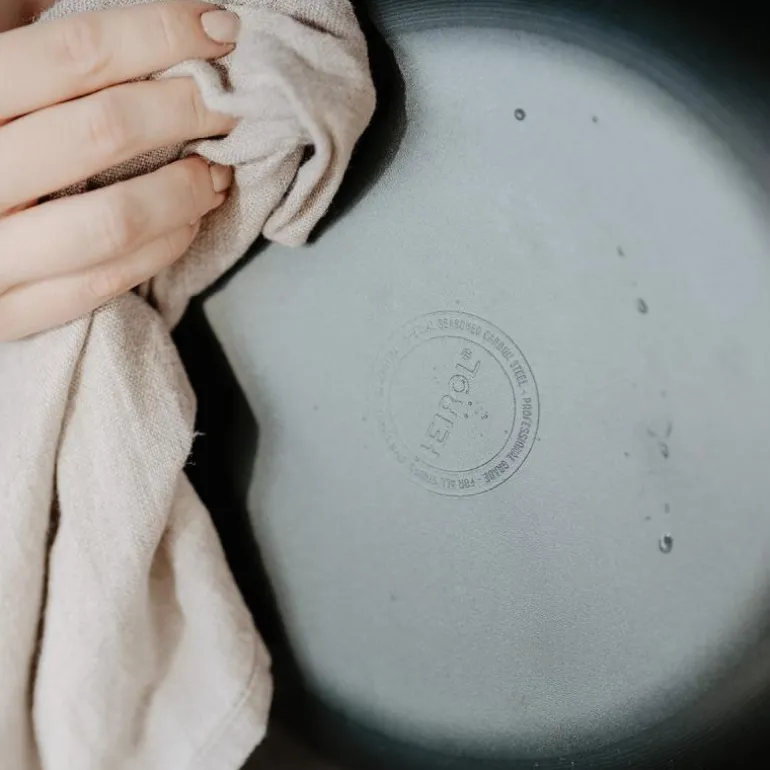Psst! Pannens utseende vil endre seg etter første bruk. Dette er normalt og påvirker ikke stekkvaliteten. Patinaen vil forbedre stekeresultatet med hver bruk over tid.