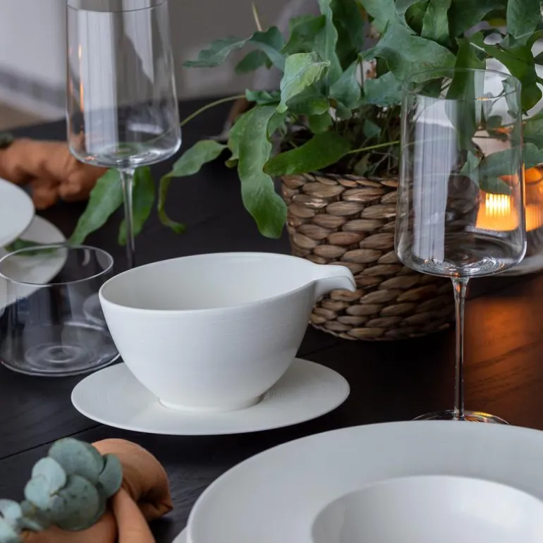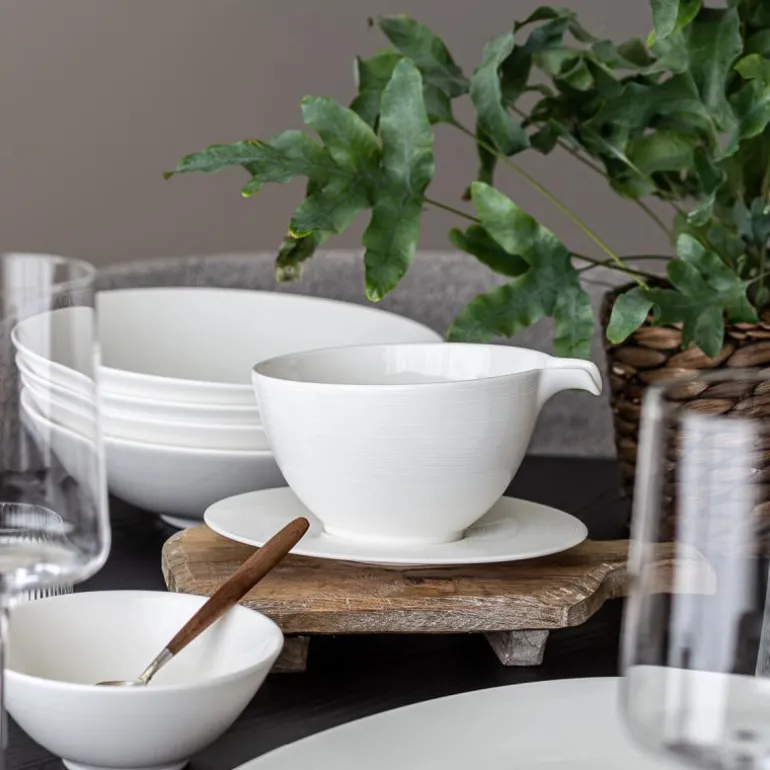 Som en del av den populære Blanche-serien, kan sausenebbet kombineres med andre elementer i samme design for å skape et gjennomført og stilfullt uttrykk. Det er laget av førsteklasses benporselen, også kjent som Bone China, en porselenstype som kombinerer slitestyrke med en delikat og elegant glans. Materialet, som består av benaske, kaolin, feltspat og kvarts, gir sausenebbet en eksklusiv finish og sikrer langvarig kvalitet.