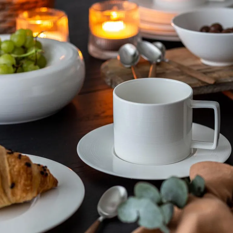 Med sin tidløse hvite finish og klassiske utforming passer underskålen sømløst inn i ethvert kjøkken eller serveringsmiljø. Den er ideell for deg som ønsker å gi dine daglige kaffepauser en ekstra dimensjon eller imponere gjester med et gjennomført servise. Laget av benporselen, også kjent som Bone China, kombinerer underskålen slitestyrke med en delikat glans. Dette eksklusive materialet, bestående av benaske, kaolin, feltspat og kvarts, gir underskålen en unik kombinasjon av letthet og holdbarhet.
