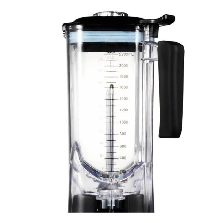 RAW Beholder med kapasitet på 2,2 Liter som passer til alle RAW modeller: X1000, X1300, X1500, F2.5, X2.5TURBO, X4.0TURBO. Beholderen er laget av Tritan og er utstyrt med 6 kniver i herdet stål. Det er litermål på utsiden av beholderen, noe som gjør den enkel å bruke. Beholderen er også utstyrt med et sikkerhetslokk og blendern starter ikke hvis lokket ikke er ordentligt på. Den kan også vaskes i oppvaskmaskin.