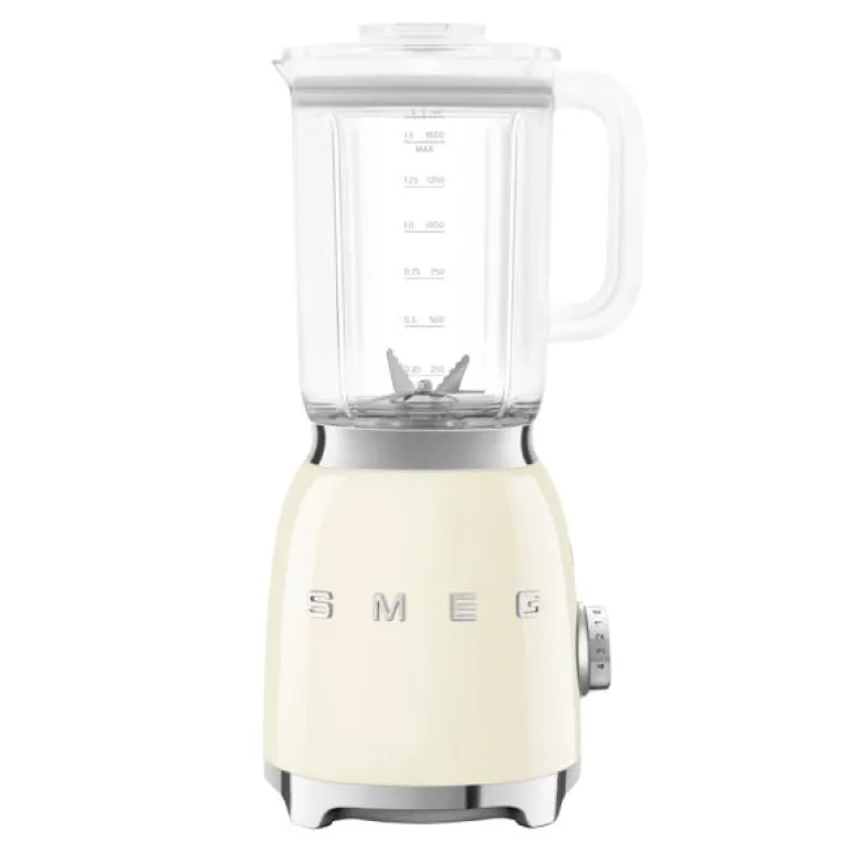 50’style blender BLF03 1,5 liter i krem fra Smeg. Det lekre designet gjør at blenderen gjerne får stå fremme på benken, og blenderen er den perfekte allierte for et stort utvalg av tilberedninger.
