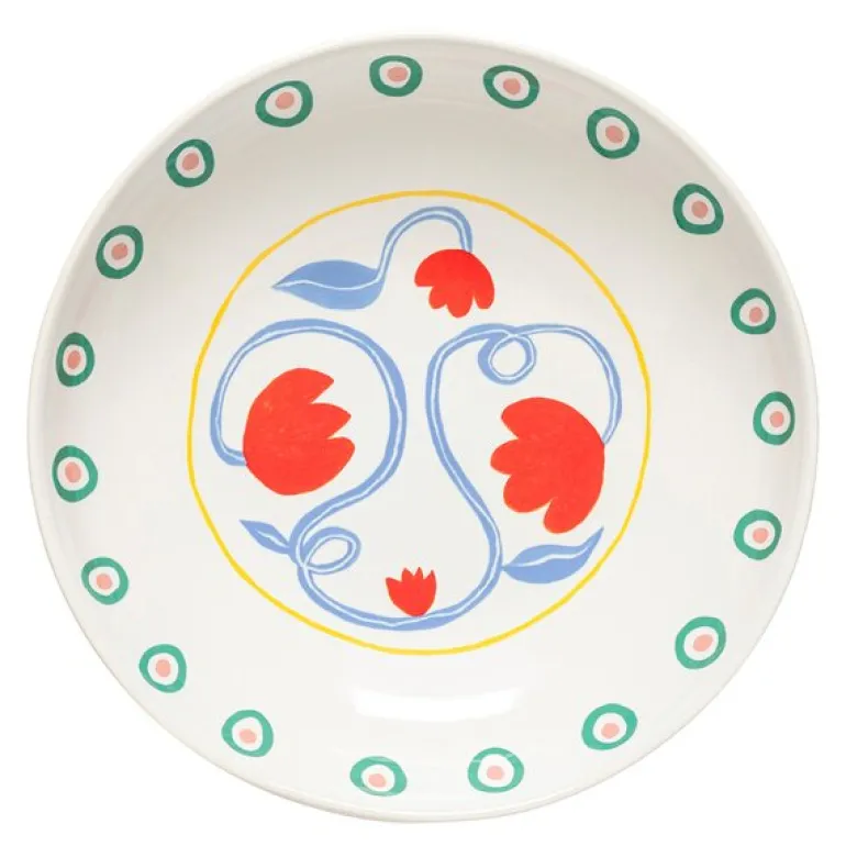 Costa Nova Bliss salat-/pastatallerken dyp 25 cm bringer en følelse av sydlandsk letthet og fargerik glede til bordet. De røde blomstene som slynger seg rundt lyseblå stilker skaper et livlig og kunstnerisk uttrykk som vekker minner om lange, late lunsjer i Sør-Europa.