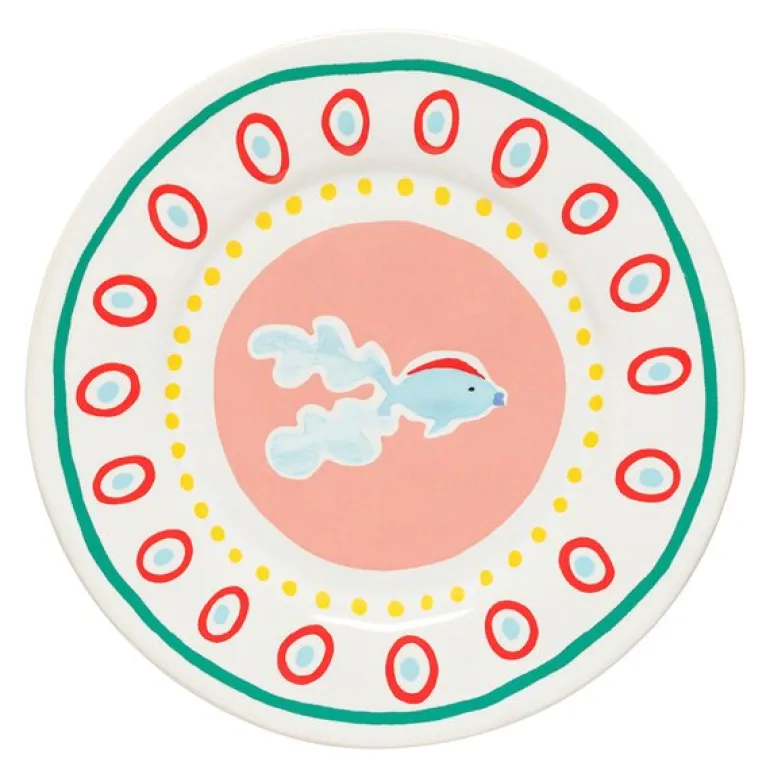 Costa Nova Bliss tallerken flat 22 cm er en fryd for øyet med sin delikate ferskenfargede bakgrunn og kunstneriske motiv. Den svømmende fisken, med sin elegante hale som ser ut til å danse i vannet, skaper en livlig og avslappet stemning som minner om varme dager ved kysten.