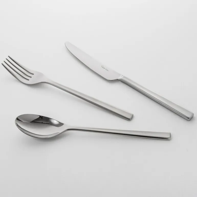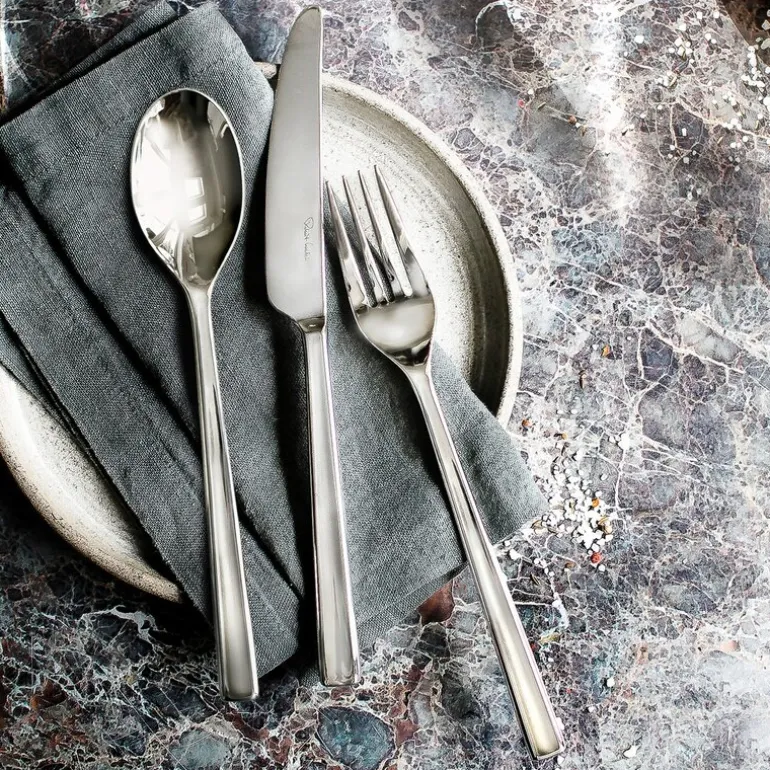 Blockley bestikksett 42 deler stål fra Robert Welch. 42-delt bestikksett inspirert av moderne arkitektur med rene linjer. Blockley fra Robert Welch er en perfekt balansert bestikkserie med sin rette, linjeformede design og en liten fordypning langs hele håndtaket som vakkert fanger lyset. Skjeer og gafler er laget av høykvalitets 18/10 rustfritt stål, og knivbladene er laget av spesielt herdet rustfritt stål for å gi best mulig skjæreevne. Alle deler i Blockley bestikkserie tåler oppvaskmaskin og har livstidsgaranti.