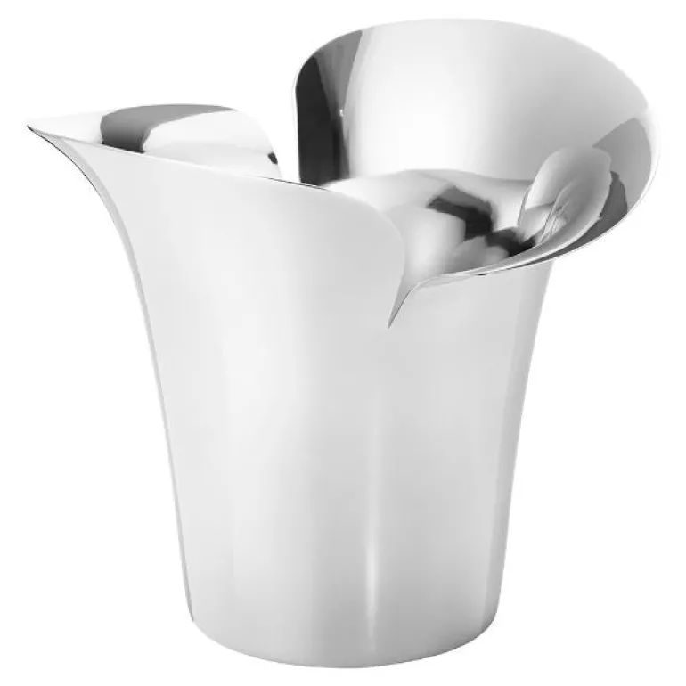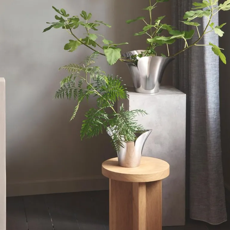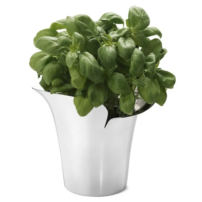 Bloom Botanica blomsterpotte i sølv fra Georg Jensen er en stilig potte i liten størrelse på 14 cm, perfekt til små planter og urter. Designet av Helle Damkjær, denne potten i polert rustfritt stål har en form inspirert av kronblad, noe som gir den et moderne og naturlig uttrykk som passer godt i både kjøkken og stue. Potten kommer til sin rett når den plasseres i grupper, enten på en hylle eller i vinduskarmen, og gir hjemmet et elegant og sofistikert preg.